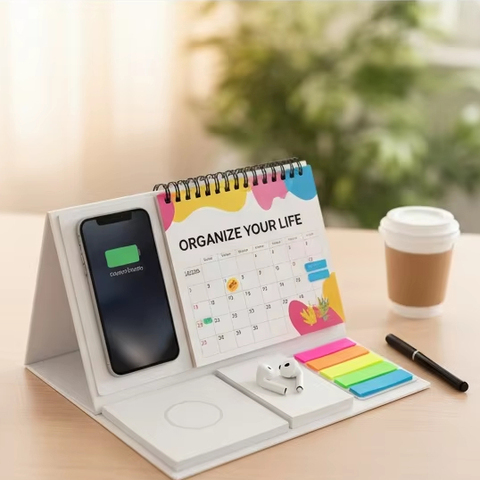 Calendario da Scrivania Advent 2026 con Caricatore Wireless 10W e Note Adesive, Set Regalo Promozionale per il Nuovo Anno